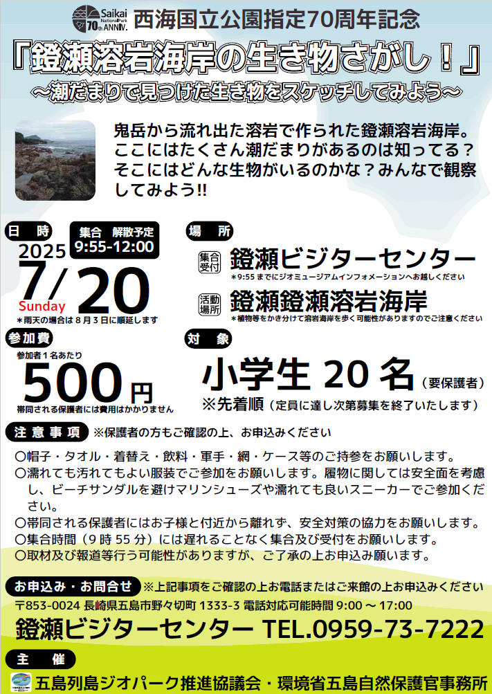 西海国立公園指定70周年記念「鐙瀬溶岩海岸の生き物さがし!」