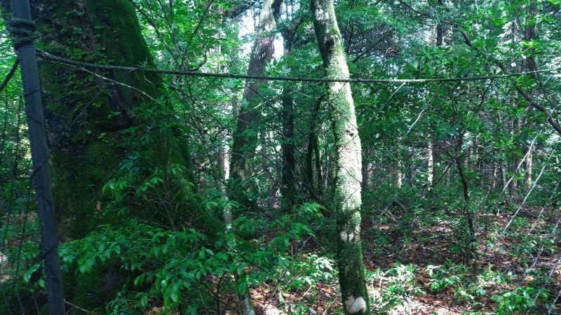 ・上:中腹付近(手前は林野庁が設置している防鹿柵) 下:山頂付近 樹木の密度が全然違います!