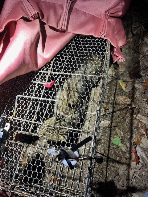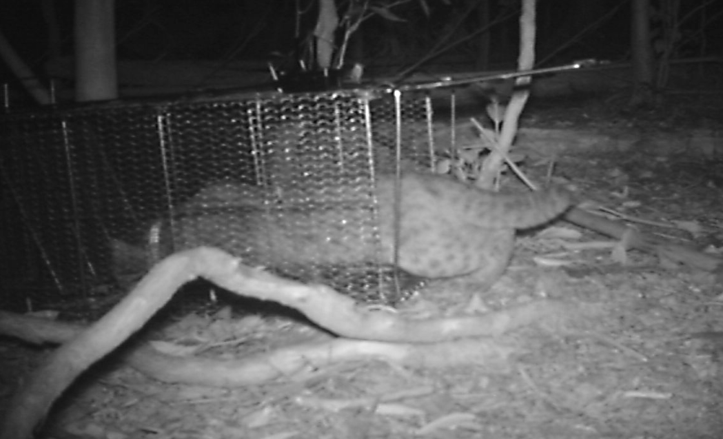②居場所近くに置いてある罠に新しい餌を入れるとともに、前日の動画をチェックしヤマネコが罠に馴致しているかも確認する