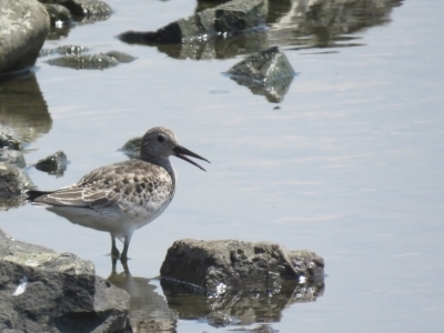 秋の渡りの始まりを告げる鳥としてバーダーから人気のあるシギ・チドリが渡りを始めており、干拓内では採餌・休息している様子が見られます。繁殖を終えた成鳥が7月中旬頃から渡り始め、今年生まれの幼鳥が少し遅れて渡り始めます。今の時期は成鳥・幼鳥ともに見られるほか、成鳥の換羽の進み具合も様々で同じ種類でも違った姿を見ることができます。渡りのシギ・チドリは10月ごろまで観察することができます。
