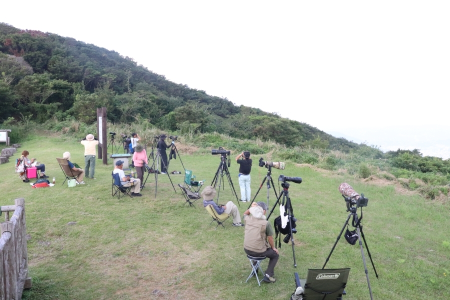 全国でも鳥愛好者の間ではよく知られていて、多くの方が大きな望遠レンズでアカハラダカを狙っていました。