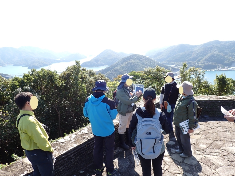 国立公園の制度についての説明や西海国立公園にまつわるクイズを行い、国立公園について学んだ後に西海国立公園の代表的な風景地である龍観山を散策しました。