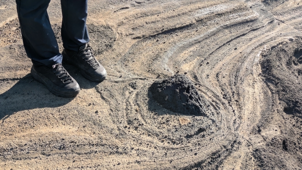 このような岩石は火山の噴火に伴い噴出された岩石であり、複数箇所においてこのような岩石の飛来した方向を推定することで、当時の噴火口のおおよその位置がわかるようで、その調査の結果、千畳敷で見られたこれらの岩石の飛来方向(噴火口)は現在の男岳頂上付近であるということがわかったそうです。