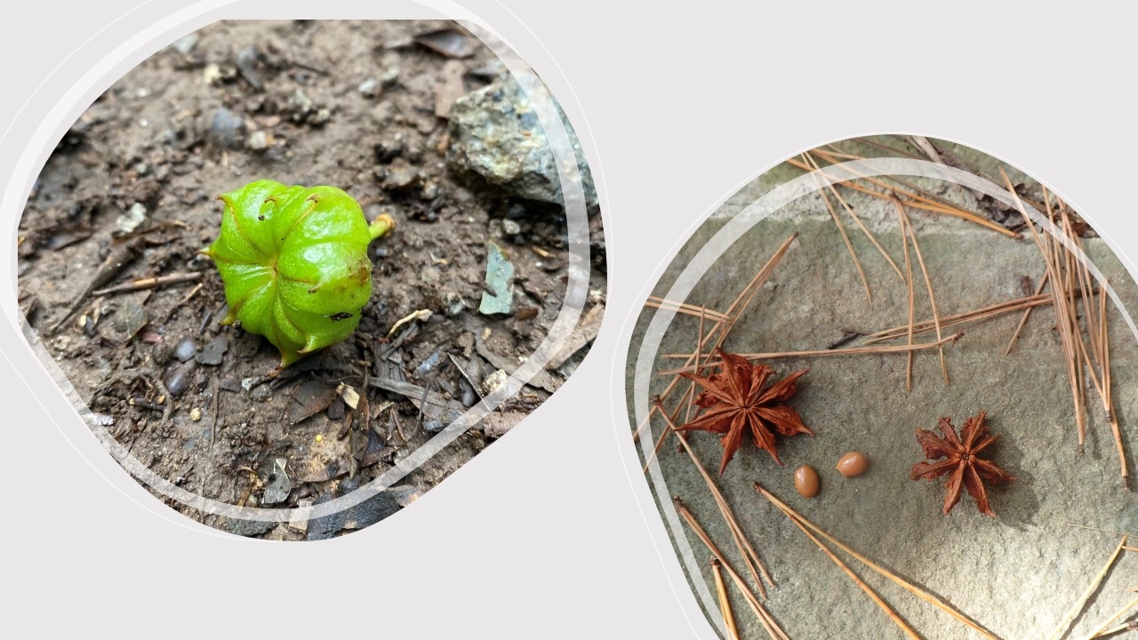 9月、田代原の自然歩道をパークボランティアの方々と歩いているときに、スパイスの八角に似た緑色の木の実を見つけました。と、ここまで読んでピンと来た方がいらっしゃると思います。シキミです。