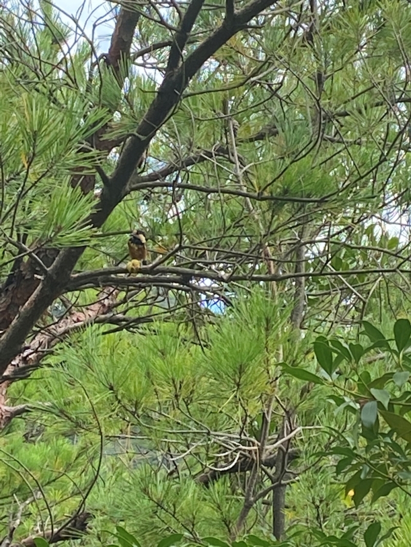 10月のある日、雲仙地獄を歩いているとシキミの実が足下にいくつも落ちていました。いつものように「有毒、有毒・・・」とつぶやきながら通り過ぎようとすると、目の前のシキミを素早く拾って木の枝に止まった生き物がいました。ヤマガラでした。