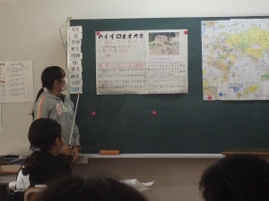 11月初旬、小学4年生の総合的な学習の時間にお邪魔し、国立公園と自然保護官事務所の仕事について話をしました。子ども達は、数時間かけて身近な自然環境や絶滅危惧種について調べ、分かったことや考えたことを広用紙にまとめており、この日はその発表をしました。