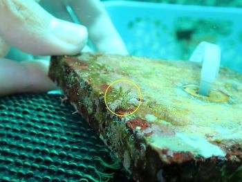 どこにサンゴの赤ちゃんが付いているかわかるでしょうか?
