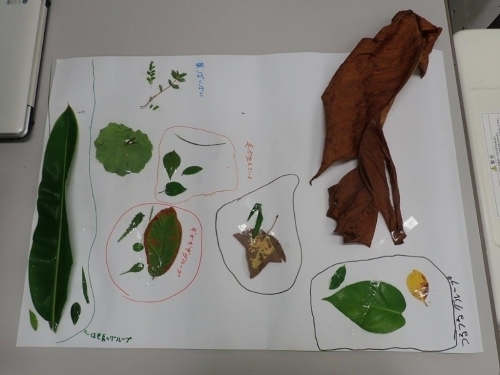 ▼よく観察すると色も形も大きさも手触りもさまざま・・・ ▼各グループ5~6種類の仲間分けがされました