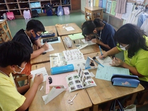 ▼グループに分かれて学校の周りにいそうな生き物の名前をあげていきます ▼いろいろな種類があがりました