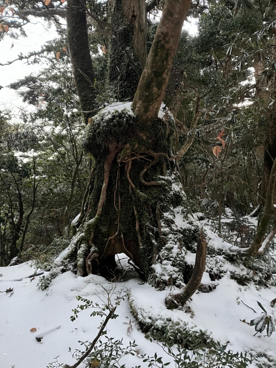 南の海に浮かぶ屋久島ですが、山岳部は九州の高い山トップ8の山々が連なっており、寒波が訪れると奥岳一帯は深い雪に覆われます。苔の上や森の中にも雪が積もり、白銀の世界となります。