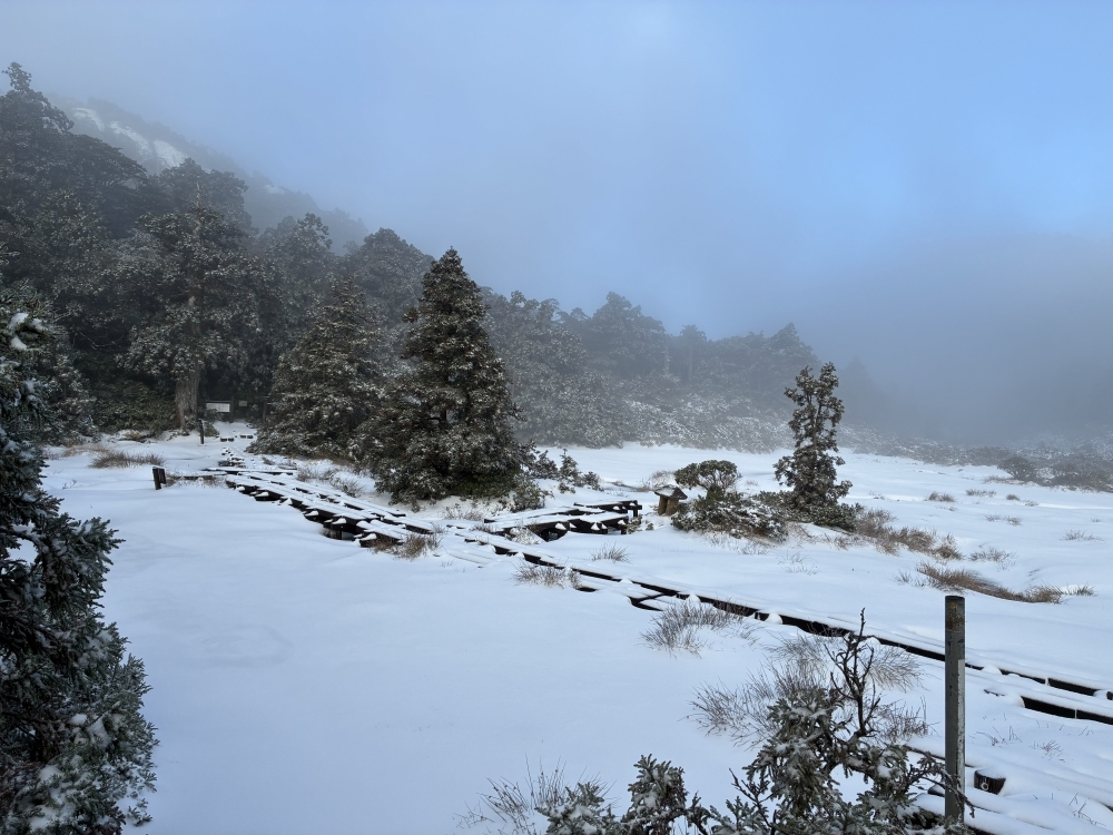 前日の寒波の影響で、淀川登山口(標高約1300m)からすでに積雪が確認され、