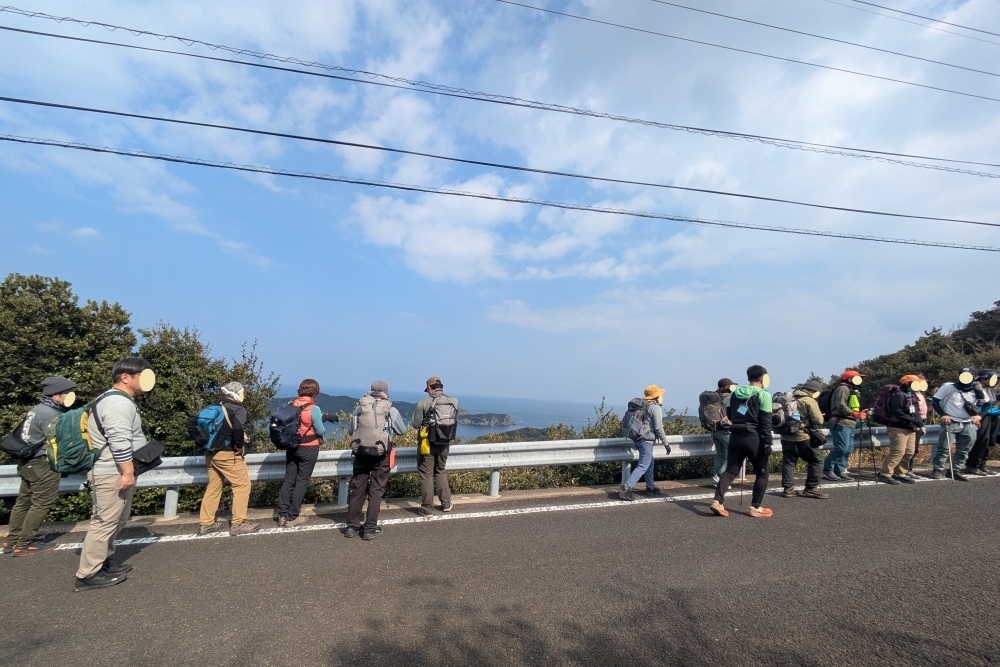 20日は同じく中通島で、はまぐりキャンプ村から黒崎、友住、頭ヶ島天主堂まで約12㎞のコースを歩きました。海がとてもきれいに見られる黒崎峠などでは、参加者の皆さんが自然のダイナミックさに感動されていました。