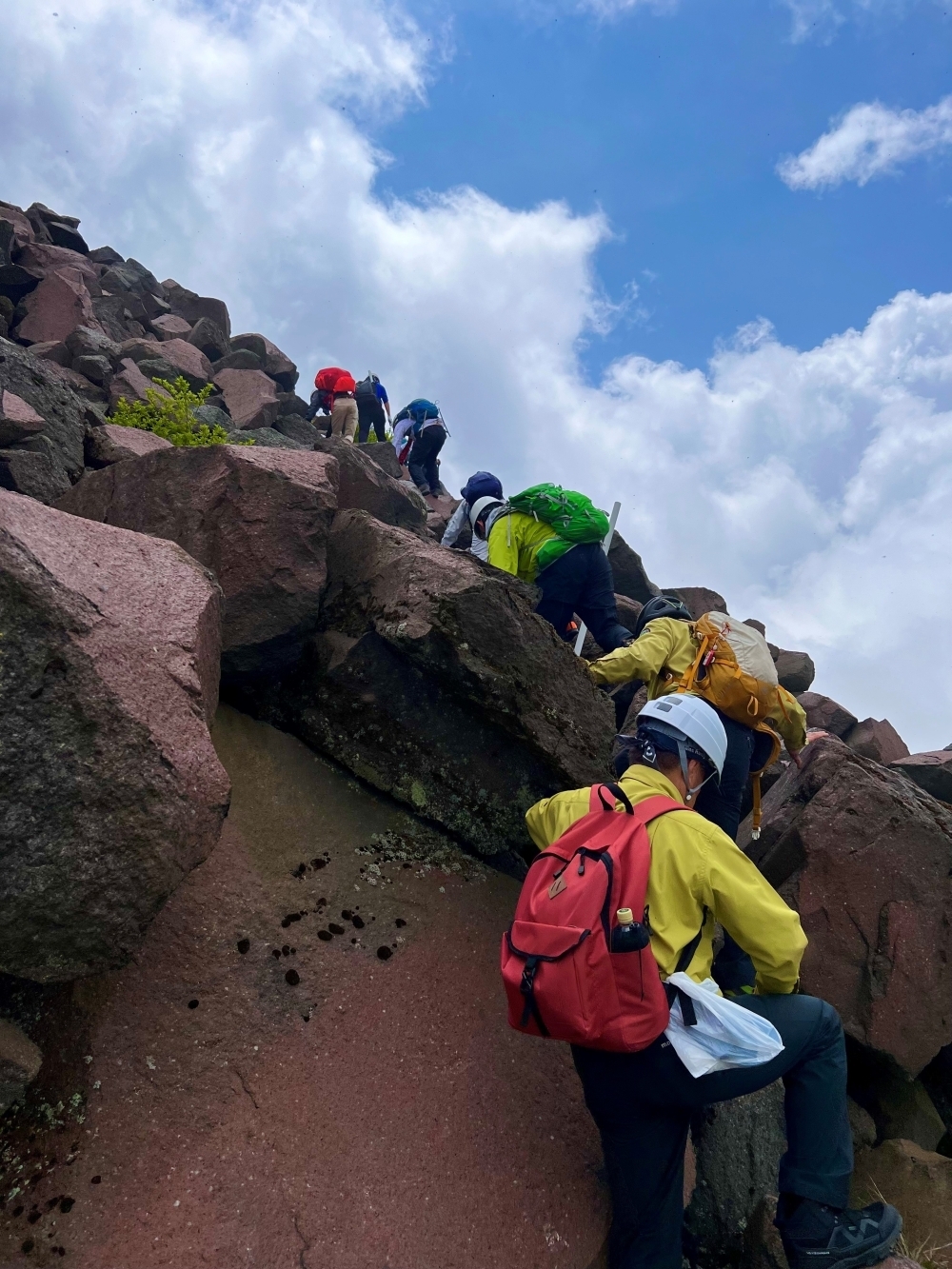 平成新山は山一面が大きな溶岩で埋め尽くされ、中にはぐらぐらする不安定な岩もあって、注意が必要でした。どこも険しい岩山で、自分で登りやすいところを探りながらの登山となりました。