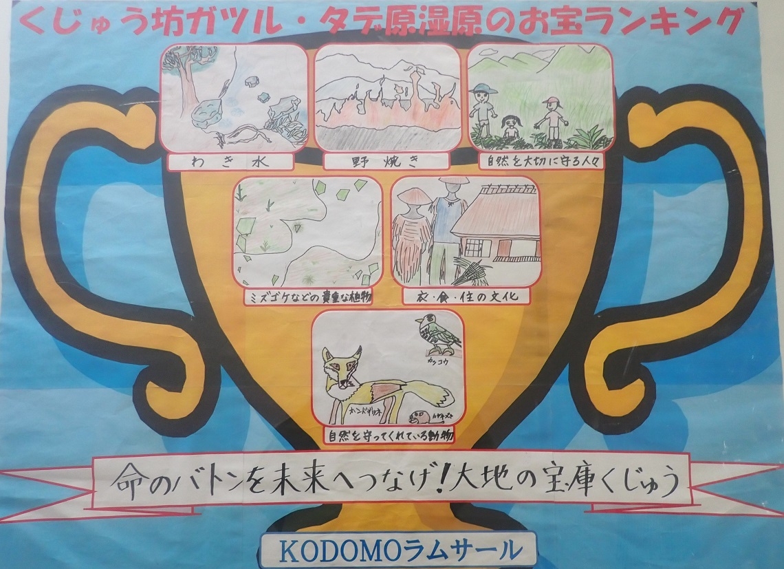 この団体結成の発端となったのが、同年7月に開催された「KODOMOラムサール〈くじゅう坊ガツル・タデ原湿原〉」です。全国のラムサール条約登録湿地で保全活動を行う小学生たちが集まり、交流しながら坊ガツル・タデ原湿原のお宝を見つけ、議論し、一つのお宝ポスターを作りあげる環境教育プログラムでした。
