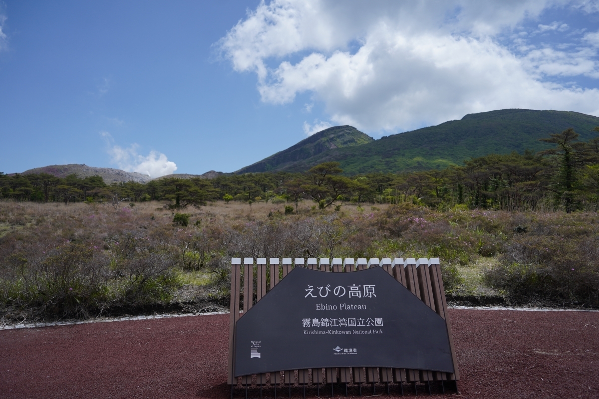 左奥に見えるのが硫黄山、右奥に見えるのが韓国岳です。ここも記念撮影に良いスポットです。