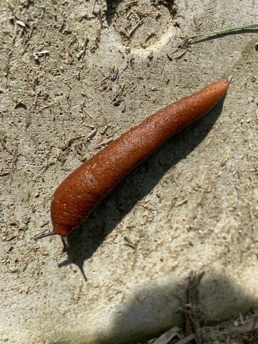 普段家の庭などで見かけるナメクジとは異なって、オレンジのような色味を帯びていますね。