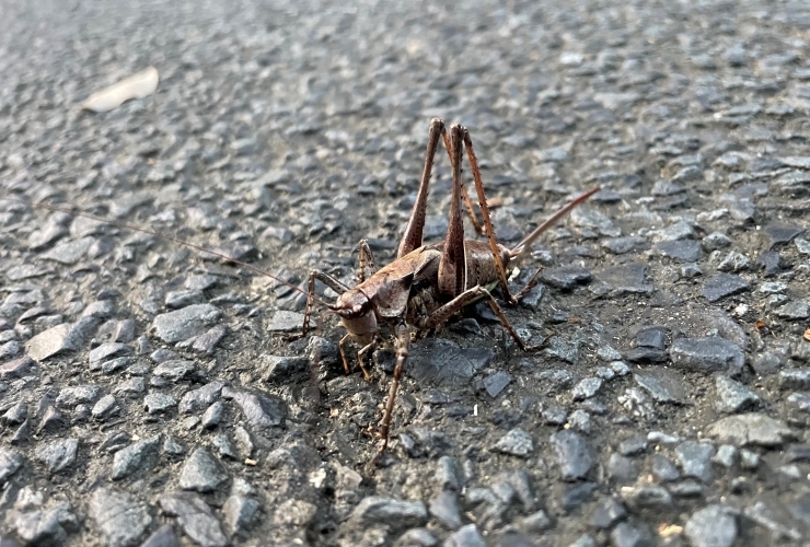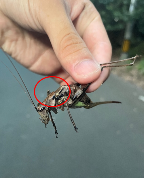 近づいても飛んで逃げられるということはないため、捕まえやすいバッタにはなりますが、顎はかなり強靱で、咬まれると出血まではいかないものの、割と本気で痛いです。