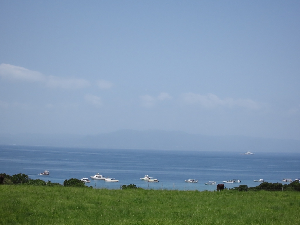 これはダイビングやスノーケリングにやってきた船です。夏になり、海でレジャーを楽しむ人々が増えてきています。