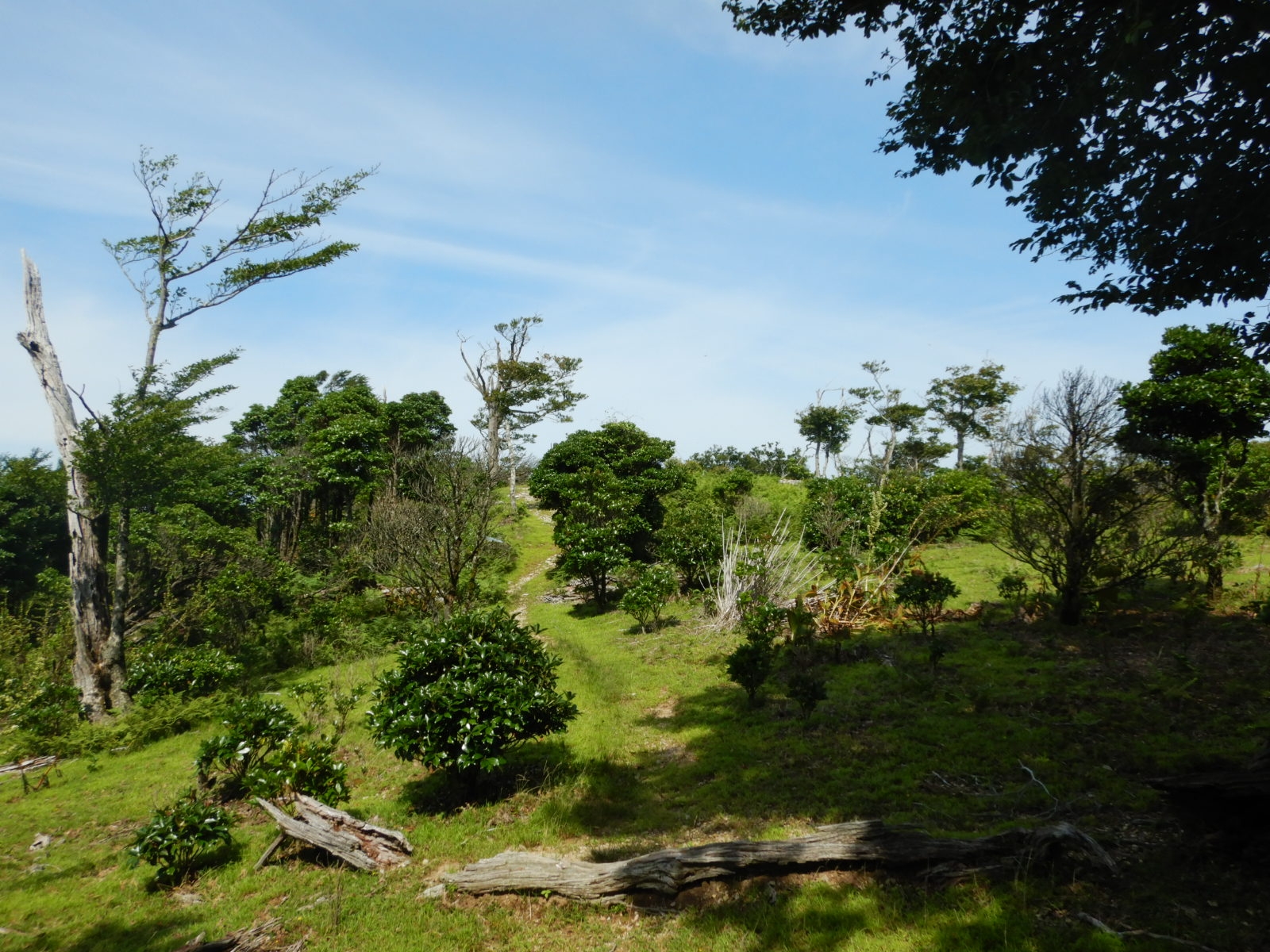 更に進んで行くと、山頂に近づくにつれて樹木が少なくなり開けた空間が現れます。