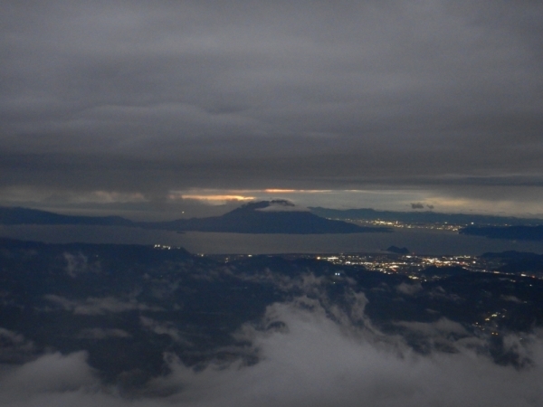頂上祭を終え、下山の準備をしていると、時々雲の隙間から霧島の夜景と桜島が顔を出し、普段見ることができない景色を見ることができました。