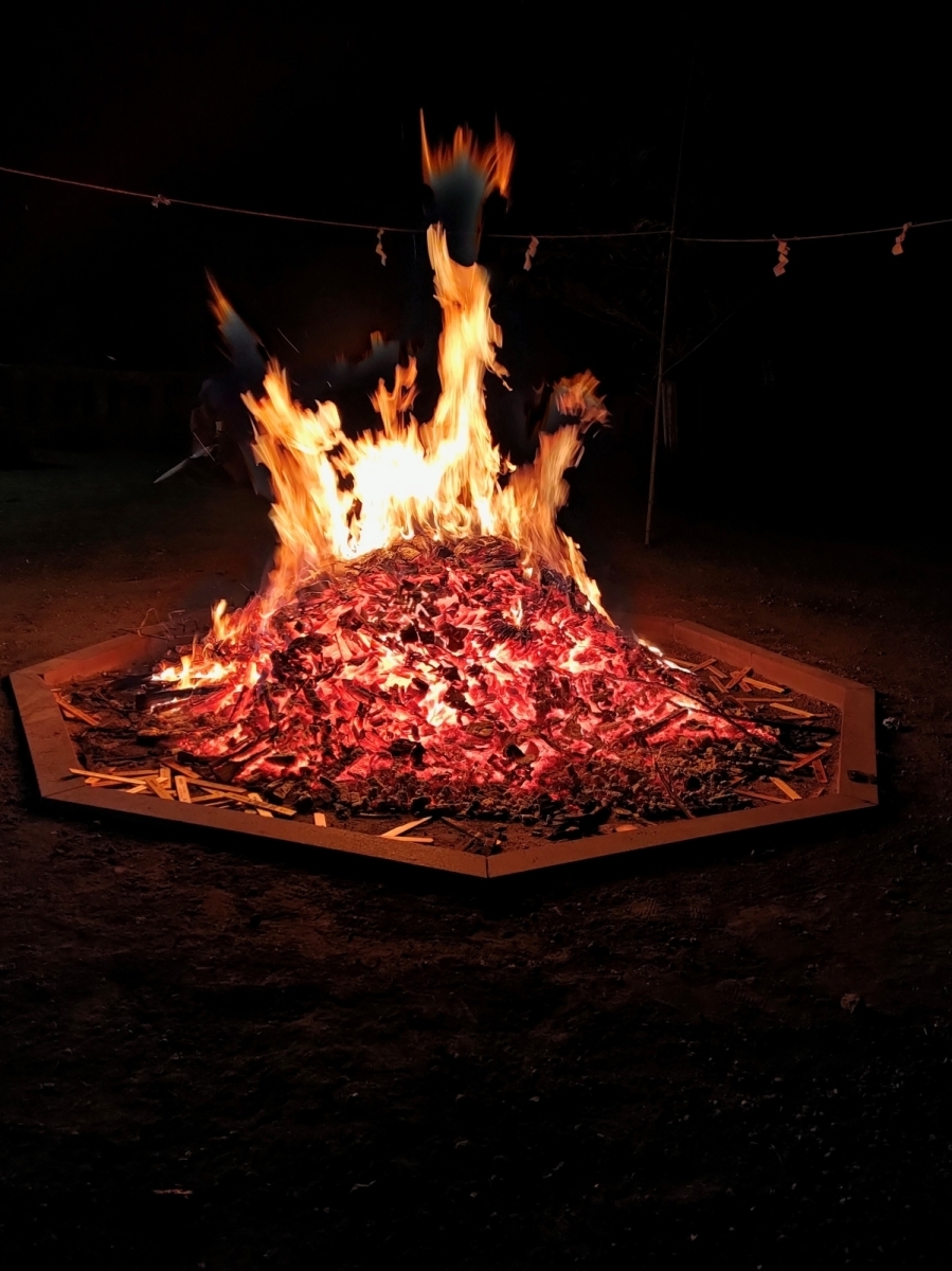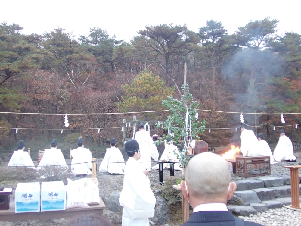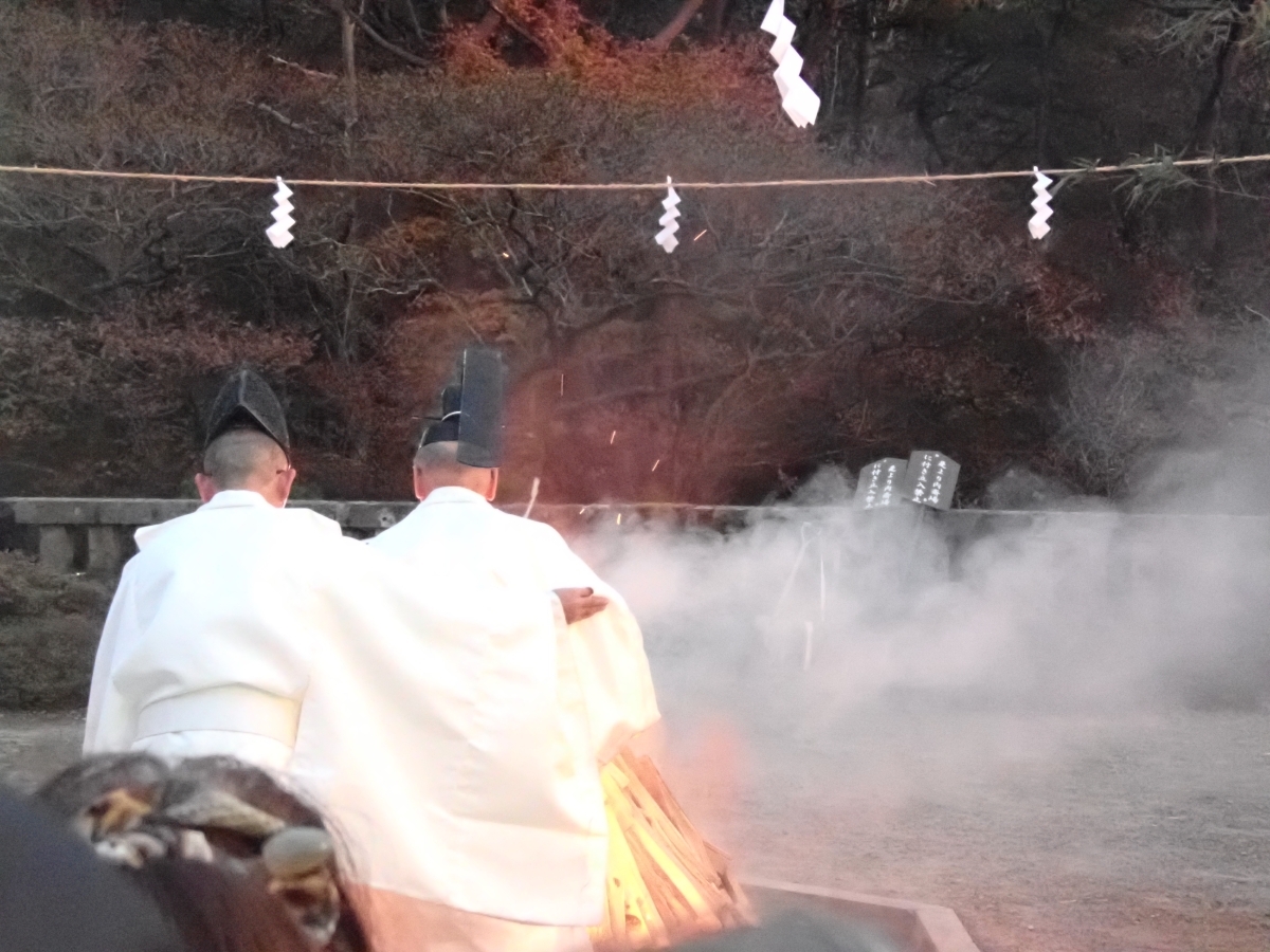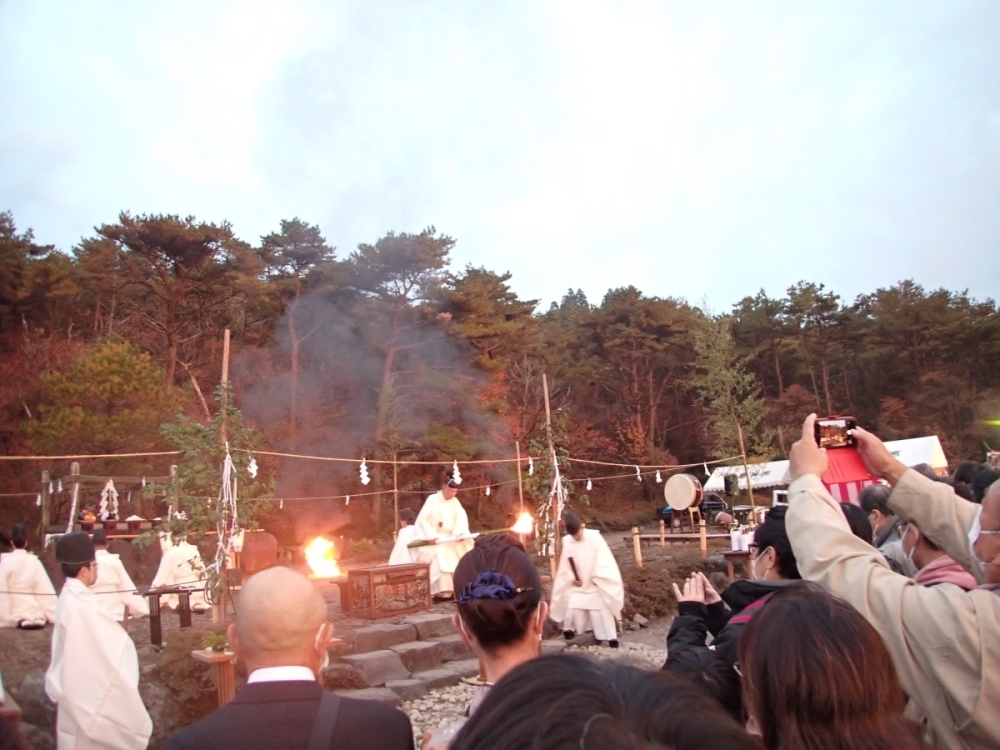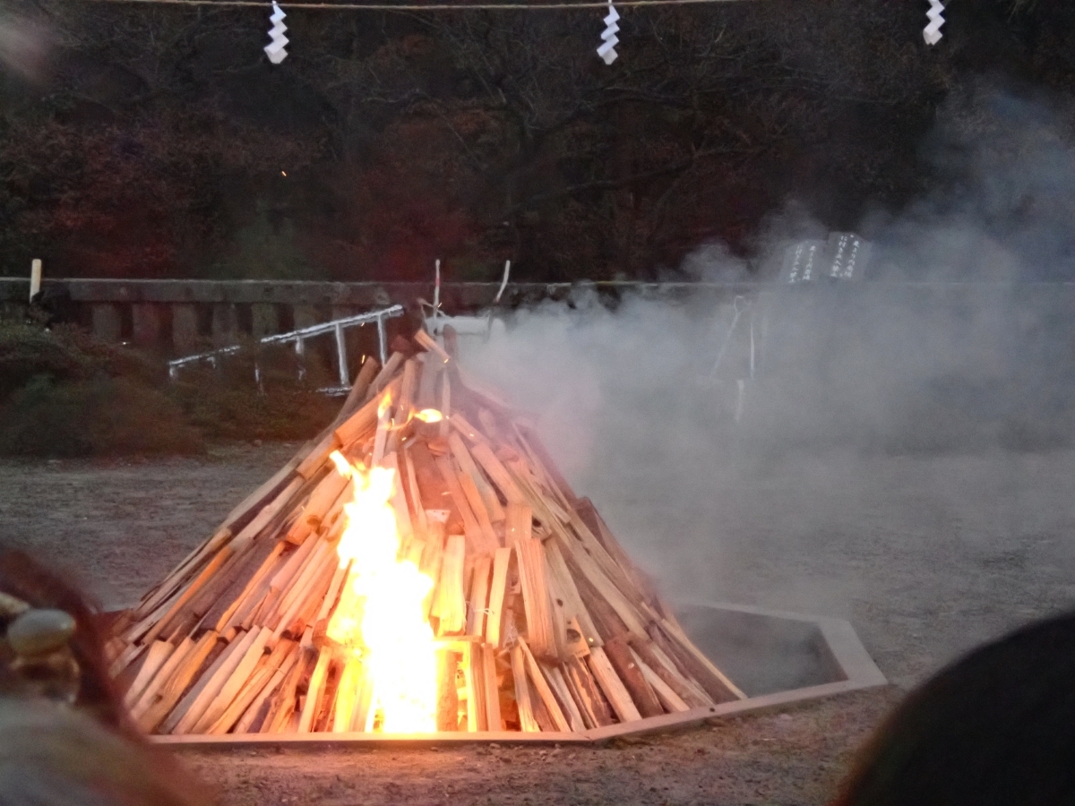 参列者の願いを託した祈願札、絵馬が焼納する祭儀で世の中の不浄が祓い浄められます。