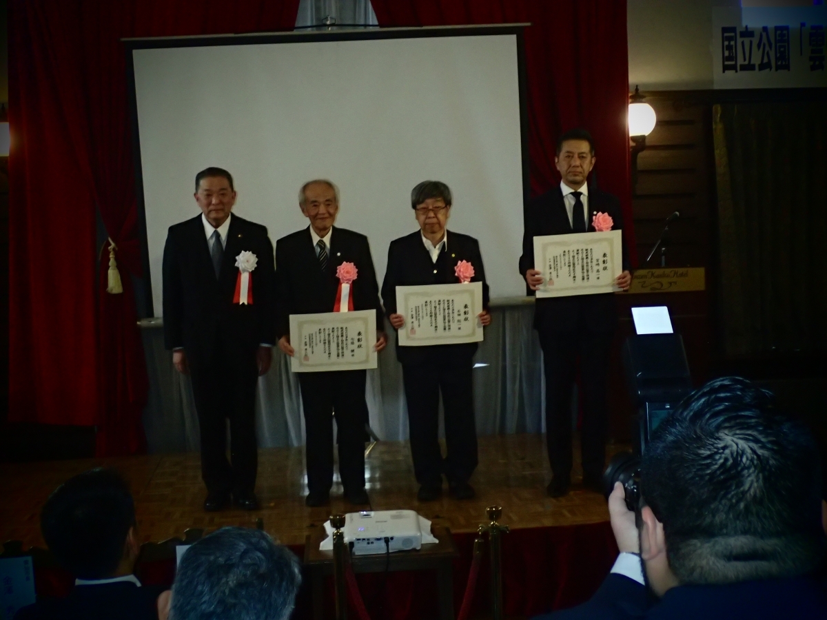 国立公園指定90周年記念功労者表彰が行われ、3名の方と1団体が表彰を受けられました。