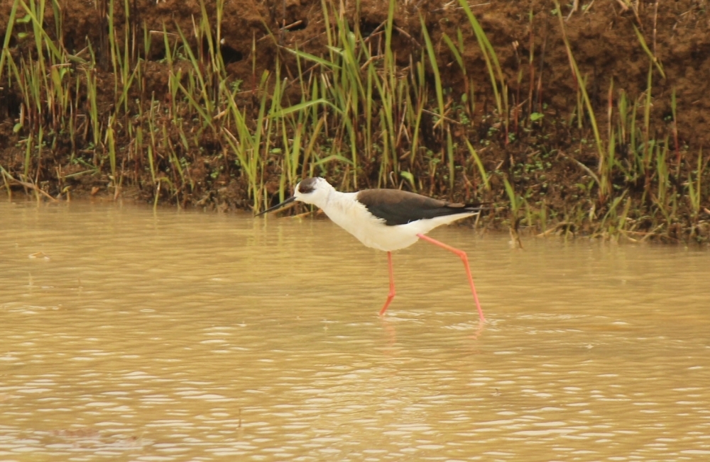 セイタカシギのストレスとならないようひっそりと観察し、もう少し近づいた写真がこちらです。