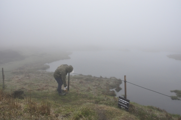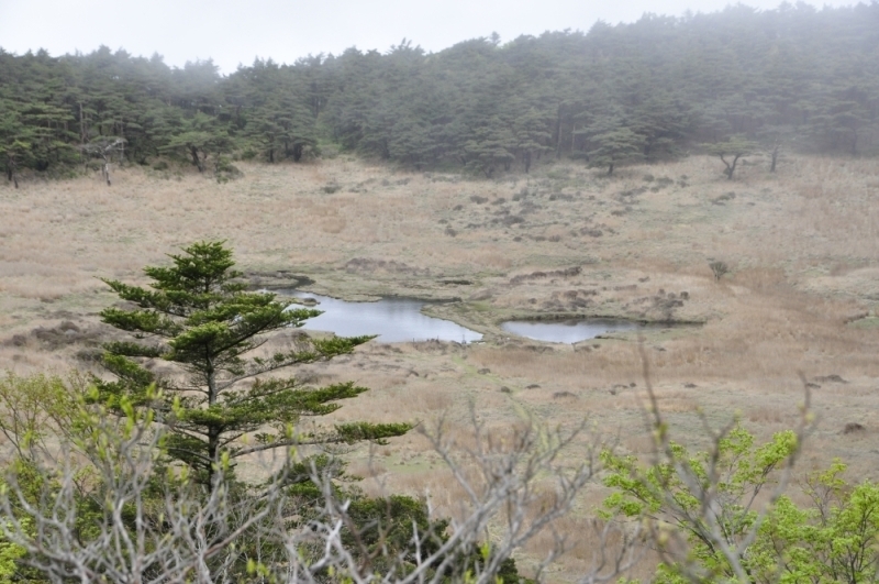 火口には長い年月をかけてできた珍しい低層湿原が広がっています。霧がかかった姿も幻想的でした。