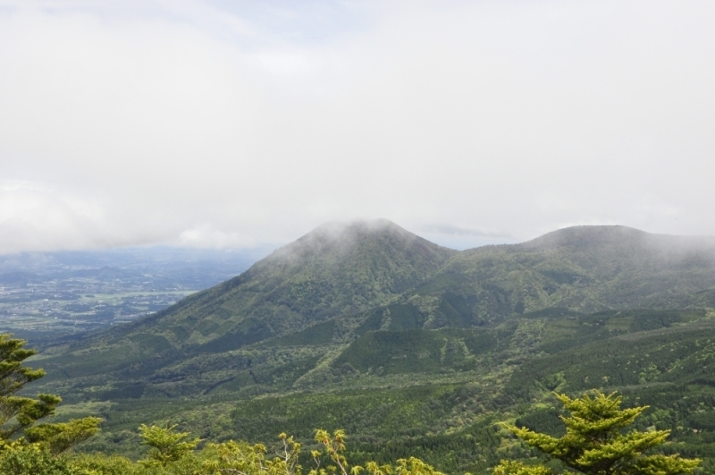 午前中は小雨で霧もかかっていたのですが、午後は天気が少し回復し、風で霧が一瞬流れて夷守岳(ひなもりだけ)を眺めることができました。