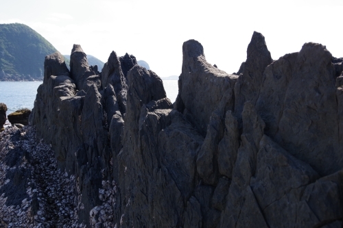 立小島は、地層が地殻変動により立ってしまっていることから全国的にも珍しい地形となっています。