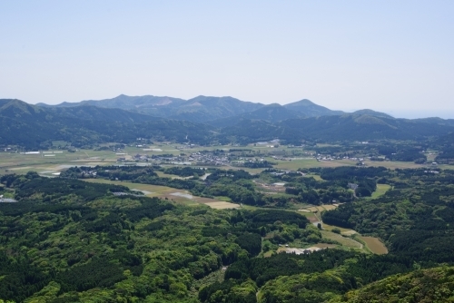 七ツ岳の山頂は岐宿(きしく)町にある山内盆地を見ることができます。