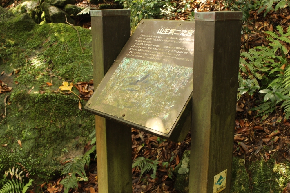 山王山の登山中にある看板はコケが生え、看板の文字も読むことができない状態でした。