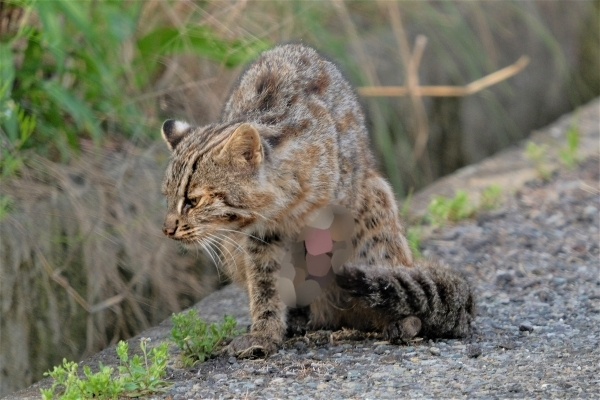 ツシマヤマネコは長崎県対馬市に生息しているベンガルヤマネコの仲間で、ヤマネコにとって生活のしやすい自然環境の減少や交通事故などが原因で生息数は100頭ほどと推定されています。
