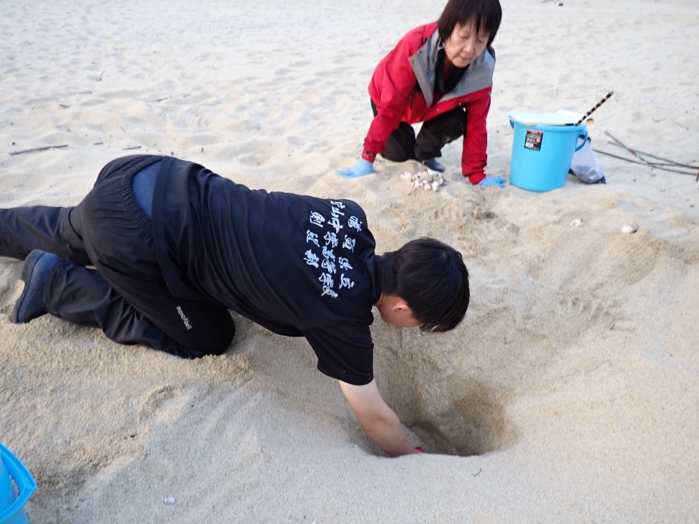 そのまま砂浜で産卵できなければ、海の中で放卵し卵が死んでしまいます。