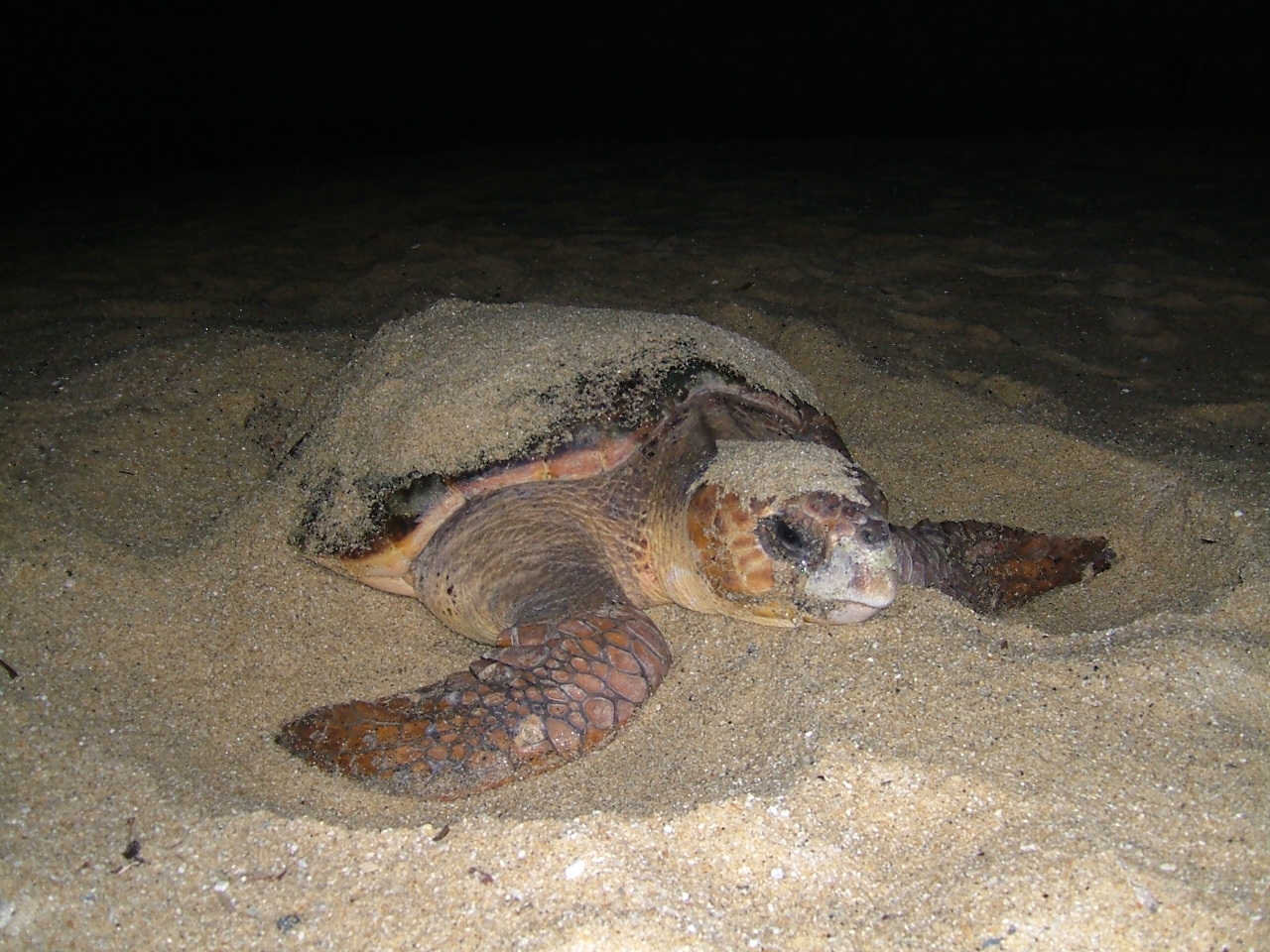 屋久島に上陸するのは主にアカウミガメとアオウミガメで、そのほとんどはアカウミガメです。