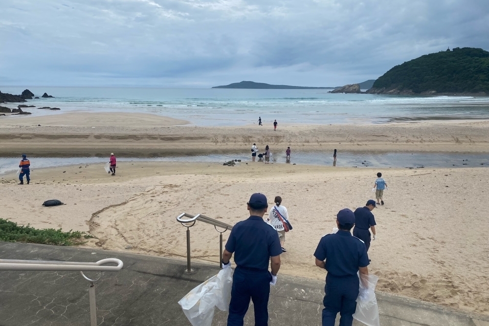 海開き祈願祭の後には水難救助講習を受け、海浜清掃を行いました。