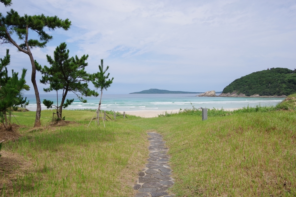 高浜海水浴場は西海国立公園内にあり、遠浅の珊瑚や貝殻が砂になったビーチで「日本の渚百選」や「快水浴場百選」にも選ばれています。