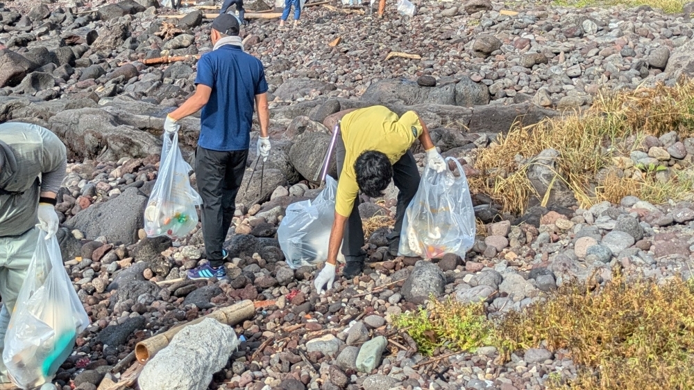 鐙瀬溶岩海岸にはたくさんの漂着ごみがあり、毎年このイベントを開催しています。