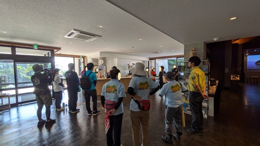 はじめに鐙瀬ビジターセンターにてジオパーク専門員から今回除草作業を行う場所の成り立ちについて説明を受けました。