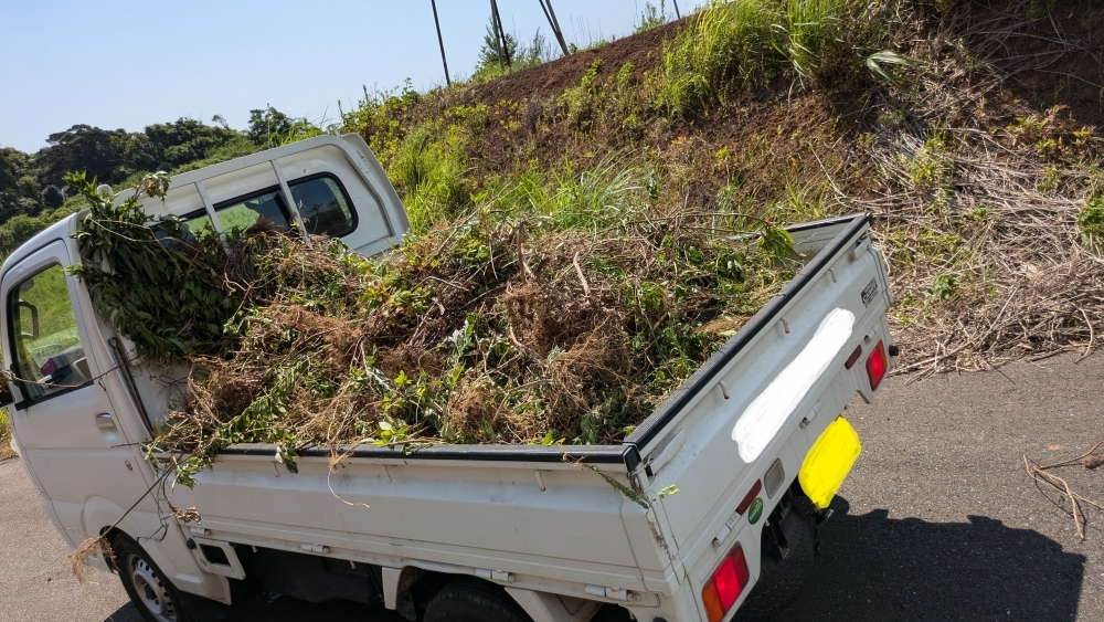 約1時間の作業で軽トラック1台分の除草ができました‼