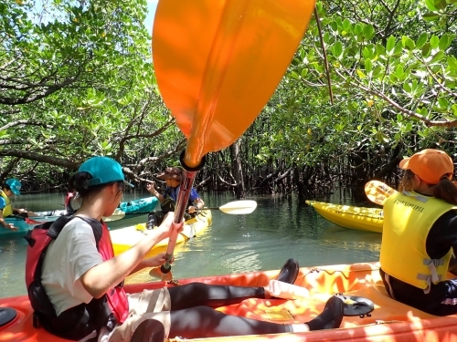 今回は、低学年チームと高学年チームに分かれて探検したので、自分たちのペースで自然をよく観察し、たくさんの気づきがありました。カヤック体験では、お友達と協力して目的を達成する事の大切さも感じられて一致団結していましたよ!