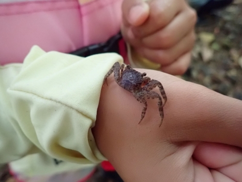 川幅が狭くなったらカヤックからおりて、シオマネキやトントンミー(ミナミトビハゼ)などの生き物を観察しながらトレッキングで滝を目指します!大きなつるのモダマの木やサクララン、サガリバナも観られましたよ!