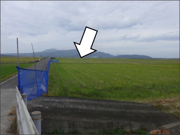 矢印のあたりがツルのねぐらで羽数調査は付近で実施します。