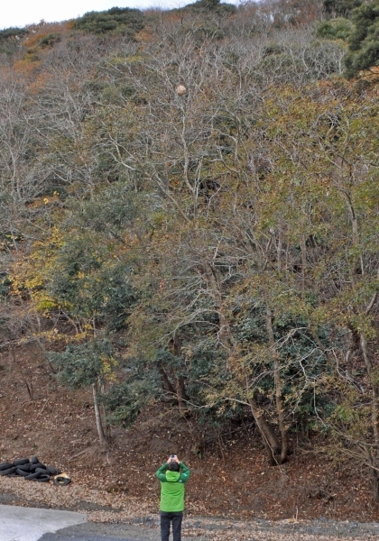 巣が樹上高くに設置されると、巣が木々に隠され、容易に発見できないということも、本種が外来種としてやっかいである点の1つですが、これからの時期は、樹木が葉を落とし、山林部の視認性が上がることで、比較的目につきやすくなります。