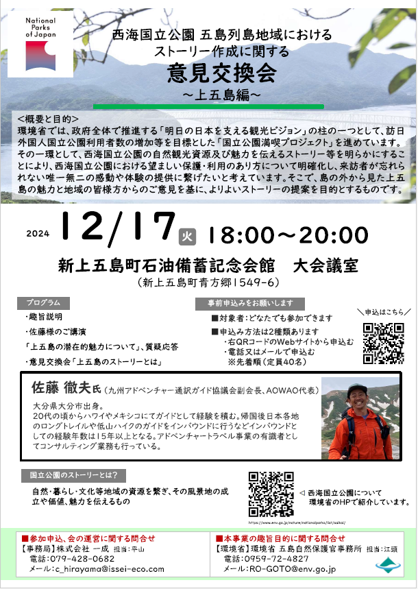 そして、12月17日に「上五島の潜在的な魅力について」講演をいただいた後、地域の皆様と上五島の魅力について意見交換ができたらと思います。