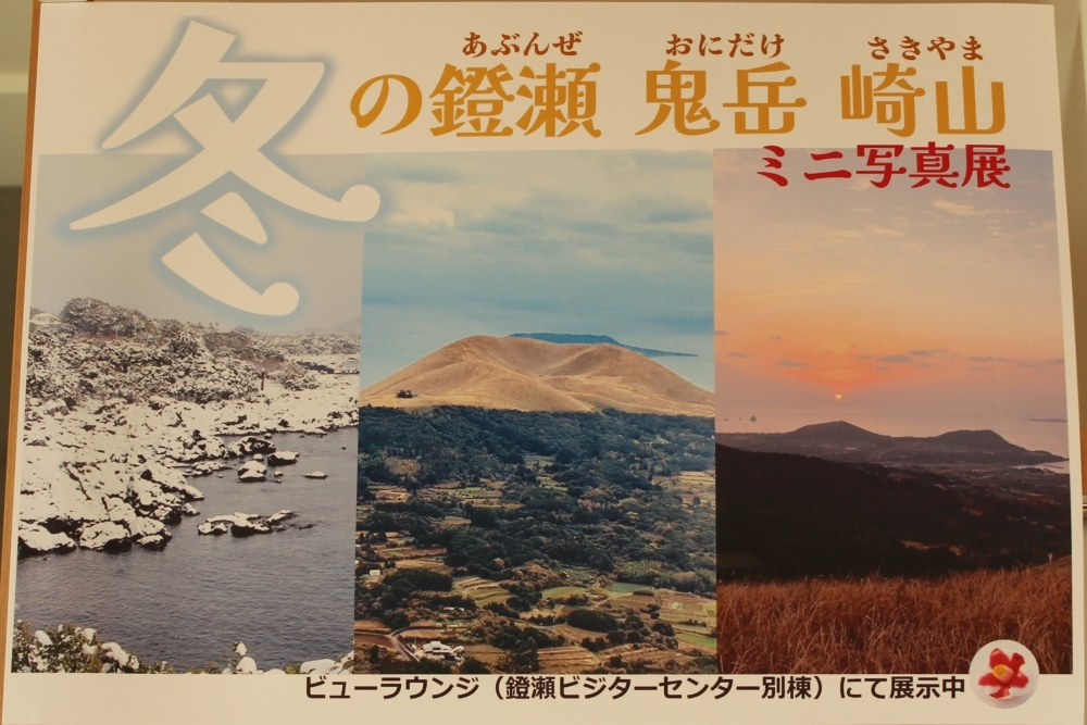 現在鐙瀬ビジターセンターの上にあるビューラウンジでは1月31日まで「冬の鐙瀬・鬼岳・崎山 ミニ写真展」が開催されています。