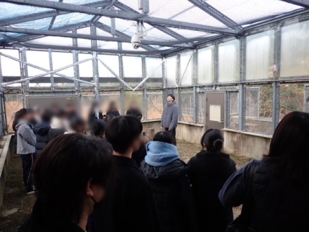 座学を終えたあとは、野生順化ケージに足を運び、施設案内を行いました。