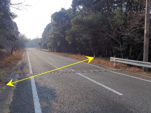 1.道路は見通しの良い直線で、坂になっている。その分スピードが出やすい。