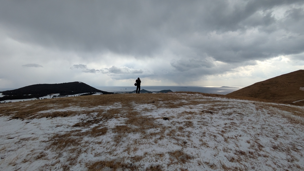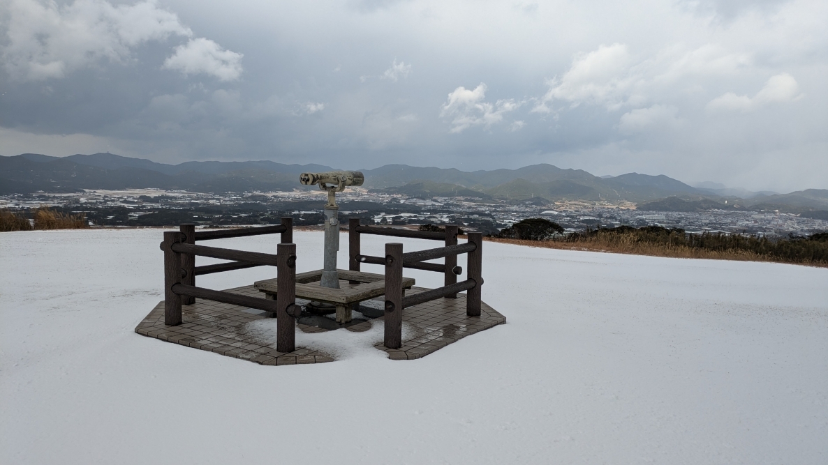 雪が積もったので早速島のシンボルでもある鬼岳に行くと…