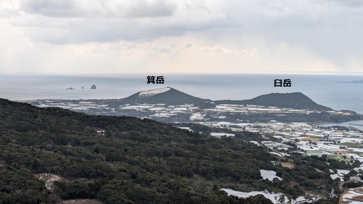 山頂付近では蓑をかぶったように見える箕岳と臼のような形の臼岳を山頂付近から見ることができました。